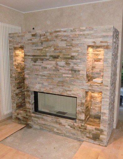 Ein Vorteil gegenüber vorgefertigten Kaminanlagen ist, dass Sie Ihre eigenen Wünsche, sofern technisch möglich, mit in die Planung einbeziehen können. So können Sie beispielsweise die Höhe der Kaminanlage, die Positionen zusätzlicher Ablagefächer oder den Naturstein für eine integrierte Bank genau bestimmen bzw. Ihrem Wohnstil oder vorhandenen Einrichtungsmaterialien anpassen.